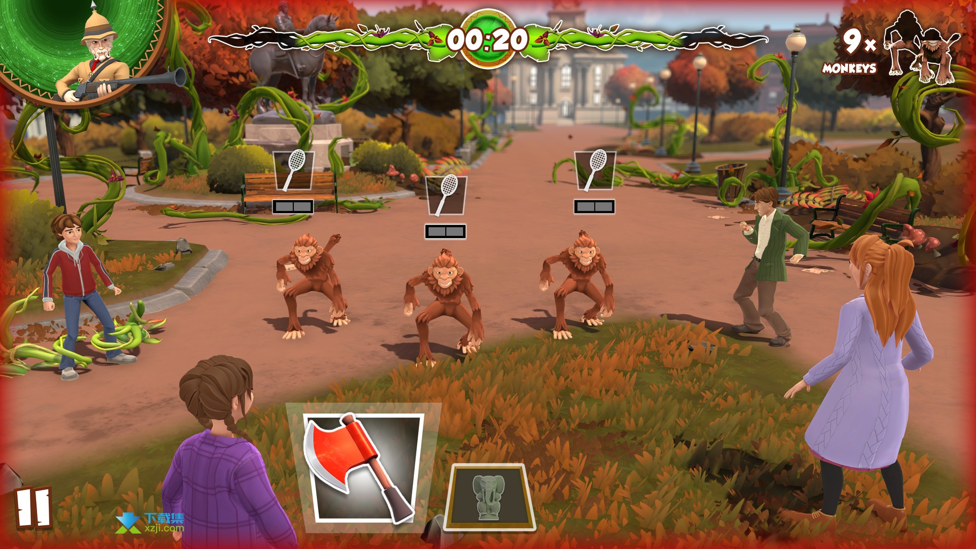 来到布兰特福德镇,探索独一无二的棋盘游戏。召集一个由 4 名玩家组成的团队 - 朋友和/或 AI - 并与 Jumanji 派出的丛林生物战斗。这是一种明亮有趣的体验,将棋盘游戏元素与卡片匹配和时间攻击风格的游戏玩法相结合。快速工作,将物品卡与危险相匹配,将大象、狮子、犀牛等吓回棋盘。这是一次难忘的合作冒险。