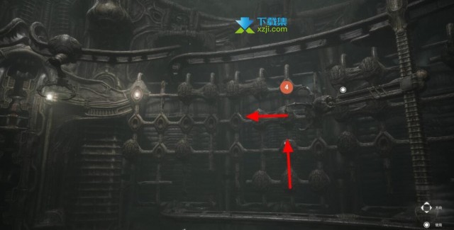 先与中间的控制台互动,然后前方高处的爪子可以从旁边架子中的亮光位置抓取物品,随后使用旁边的操作台将目标物品移动至架子的左上角。