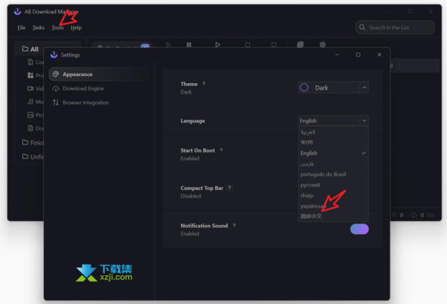 软件打开后是全英文版,大家在“Tools”——“Settings”,然后Language下选择“简体中文”,最后重启就变成了中文界面。