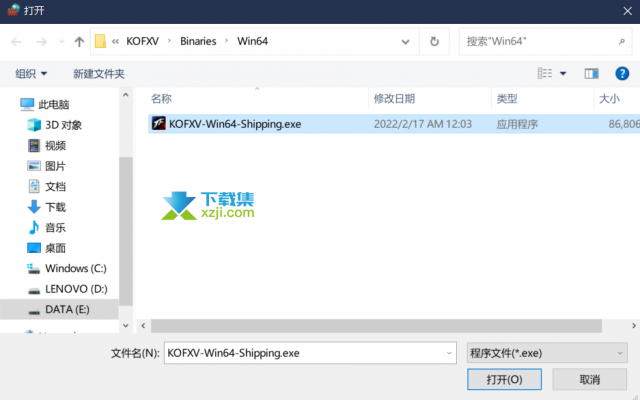 选“浏览”找到游戏路径(这里注意要选到根目录下面的本体,不要选了打包启动的exe …\Epic Games\TheKingOfFightersXV\KOFXV\Binaries\Win64\KOFXV-Win64-Shipping.exe)。