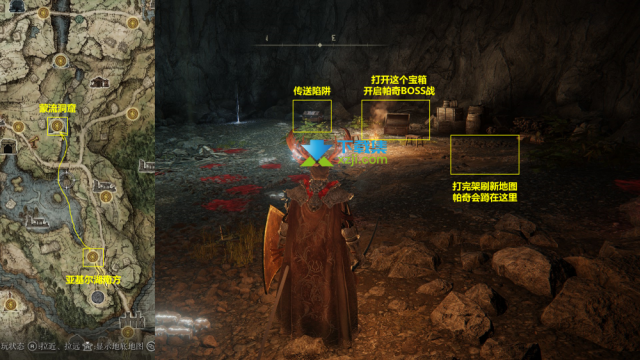 3. 打开帕奇房间中的另一个宝箱,会播放一段帕奇的语音并触发传送陷阱,会被传送至宁姆格福的雾林,找到最近的赐福休息,即可解除传送陷阱的debuff。